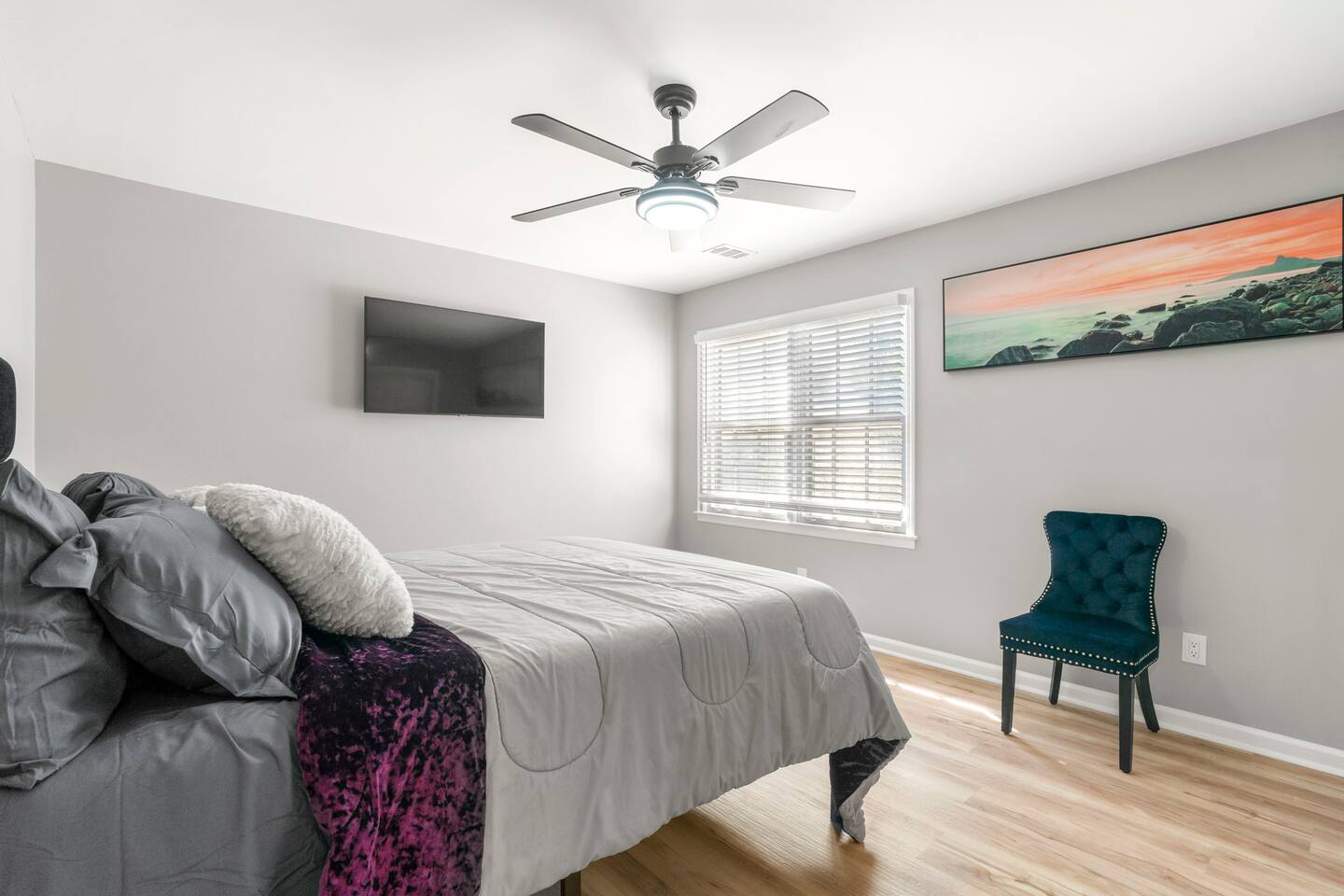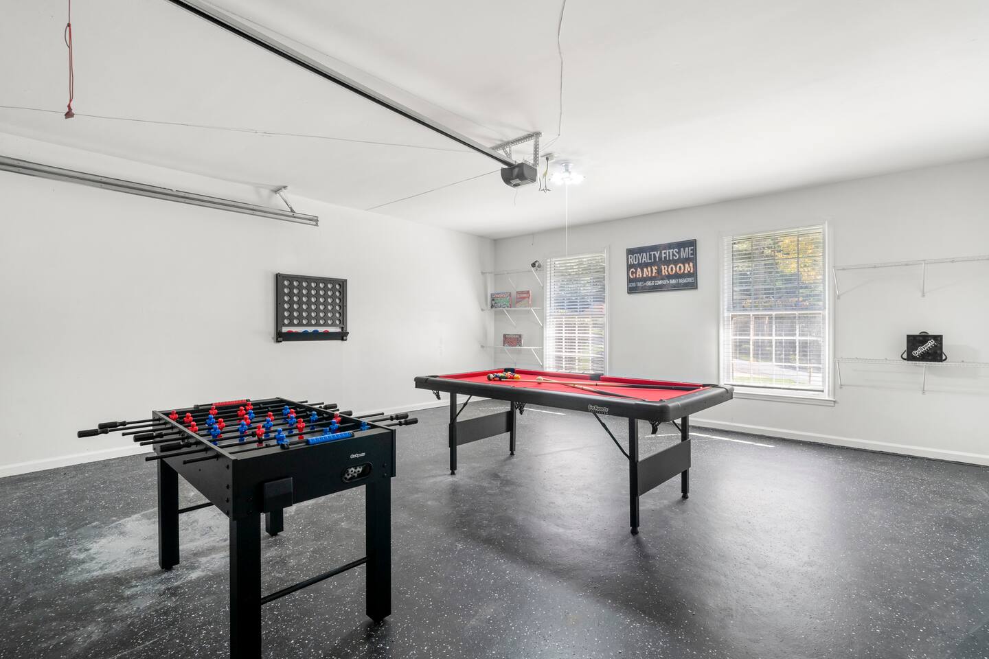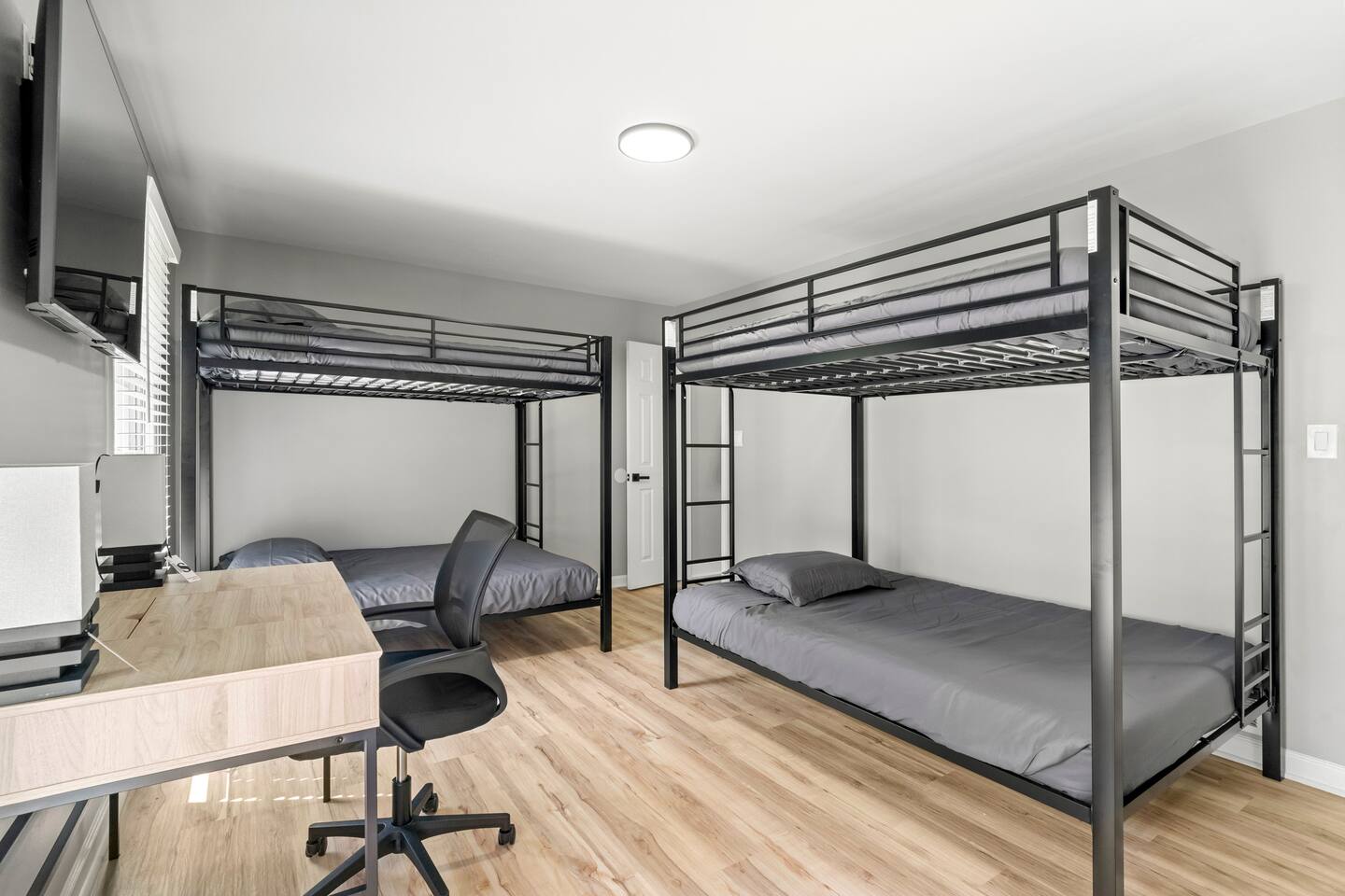This home is perfect for families and groups, offering plenty of space to relax and enjoy. With a fully equipped kitchen, cozy living areas, modern comforts, a private backyard with patio seating, and ample garage + driveway parking, you’ll have everything you need for a comfortable and memorable stay. 🛋 Living Room Large HDTV with Roku Pool table for entertainment High-speed WiFi 🍳 Kitchen Fully equipped with stainless steel gas stove, oven, and microwave Refrigerator + freezer Dishwasher Coffee maker, toaster, blender, hot water kettle Pots, pans, oil, salt & pepper Dishes, silverware, bowls, cups, wine glasses Dining table for family meals 🛏 Bedrooms (6 total / 9 beds with 2 bunk beds) Fresh cotton linens and bed sheets Ample towels, soap, and toilet paper provided Clothing storage: closets, wardrobes, and dressers Hangers + iron Central air conditioning, heating, and ceiling fans Dedicated Workspace 🛁 Bathrooms (4 total) Shampoo, conditioner, and body soap provided Hair dryer + cleaning products Hot water + bidet Fully stocked with towels and essentials 🌿 Outdoor & Patio Private backyard with grassy area Patio/balcony with outdoor seating Outdoor dining area BBQ grill for cookouts 🚗 Parking Free garage and driveway parking Plenty of space for multiple vehicles