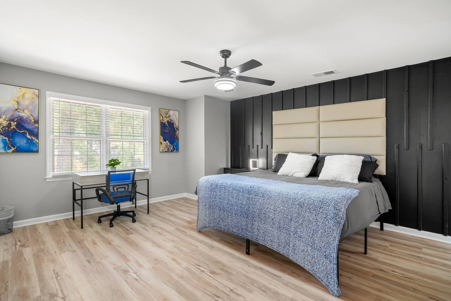 Experience comfort in this spacious 6-bedroom, 4-bathroom home, just 4 minutes from Hartsfield-Jackson Atlanta International Airport. Enjoy expansive living areas, a fully equipped kitchen, high-speed Wi-Fi, central heating, and air conditioning. Relax in the private backyard oasis. Explore nearby attractions and local dining options in this welcoming space.
