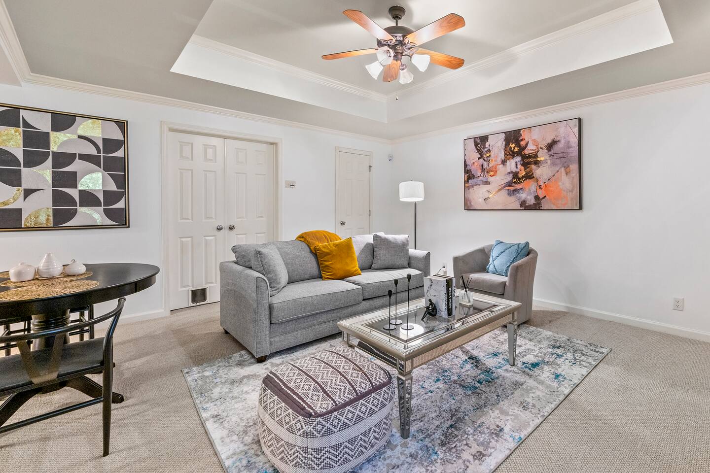 Step into a stylish, well-appointed home featuring a spacious living room with cozy seating—perfect for relaxing after exploring Atlanta. Enjoy meals or remote work in the inviting dining area, and rest easy in the bedroom’s plush queen bed. The full bathroom comes stocked with essentials to start your day refreshed. Modern comforts include high-speed Wi-Fi, a flat-screen TV, and a fully equipped kitchen with all the cookware you need. Fresh linens, towels, and toiletries are provided for a hassle-free stay. Tucked in a peaceful neighborhood, our home offers quick access to dining, shopping, entertainment, and scenic parks—ideal for morning jogs or leisurely strolls. Business travelers will appreciate the easy access to major highways and nearby public transit for seamless trips around Atlanta. Nearby attractions: • Fernbank Museum & Forest – Dinosaurs, giant theater, nature trails • Atlanta BeltLine Eastside Trail – Walking, biking, street art, cafés • Ponce City Market – Food hall, shops, rooftop park • Cator Woolford Gardens – Historic Italian-style gardens • High Museum of Art – Premier art collections • MLK Jr. National Park – Civil Rights history Whether you’re visiting for work or leisure, our cozy retreat offers the perfect blend of comfort, convenience, and connection to Atlanta’s best sights.
